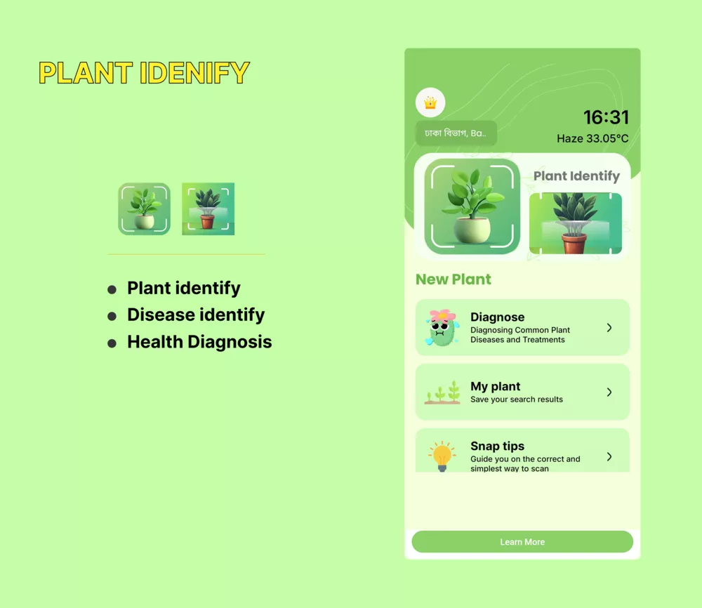 A cutting-edge mobile tool that uses computer vision to diagnose plant health issues instantly from a photo and provide treatment advice.